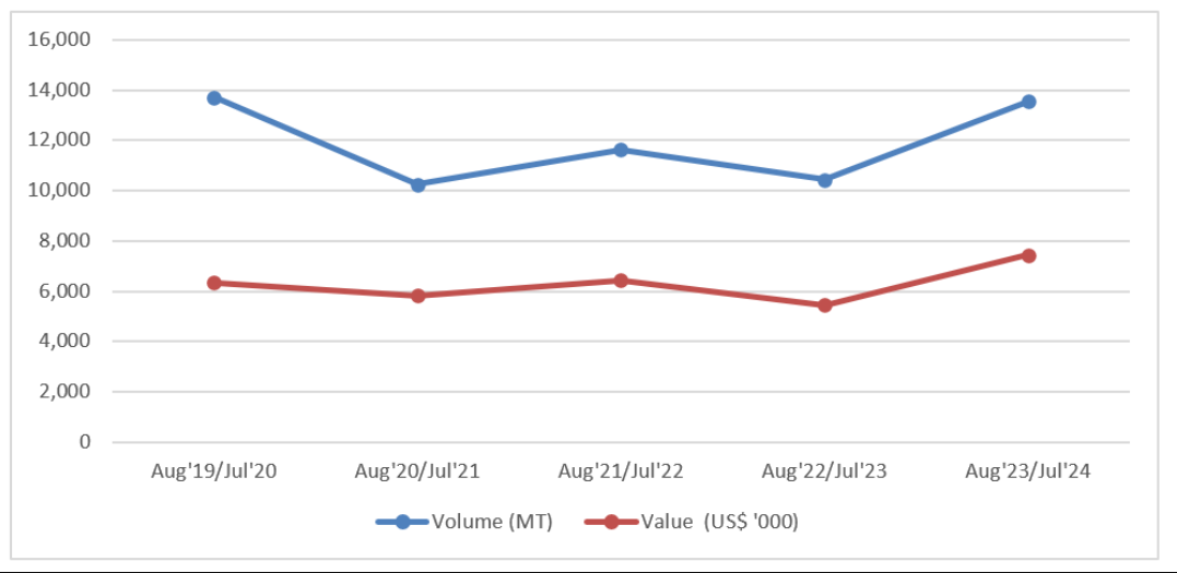 Nhật Bản cũng ghi nhận mức giảm 9% trong nhập khẩu than hoạt tính trong khoảng thời gian từ tháng 1 đến tháng 7 năm 2024, giảm từ 48.722 tấn năm 2023 xuống còn 44.487 tấn. Điều này phản ánh xu hướng giảm dài hạn trong khối lượng nhập khẩu của Nhật Bản, với tỷ lệ tăng trưởng hợp nhất hàng năm (CAGR) là -0,35% trong thập kỷ qua. Ngược lại, nhu cầu ở các nước Liên minh châu Âu (EU28) đã tăng 2,5% trong nửa đầu năm 2024, tăng từ 181.310 tấn trong khoảng thời gian từ tháng 1 đến tháng 6 năm 2023 lên 185.791 tấn trong cùng kỳ năm 2024.